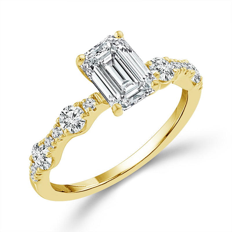 Diamond Bridal Ring 1 1/2 ct tw Center EM 14k Yellow Gold