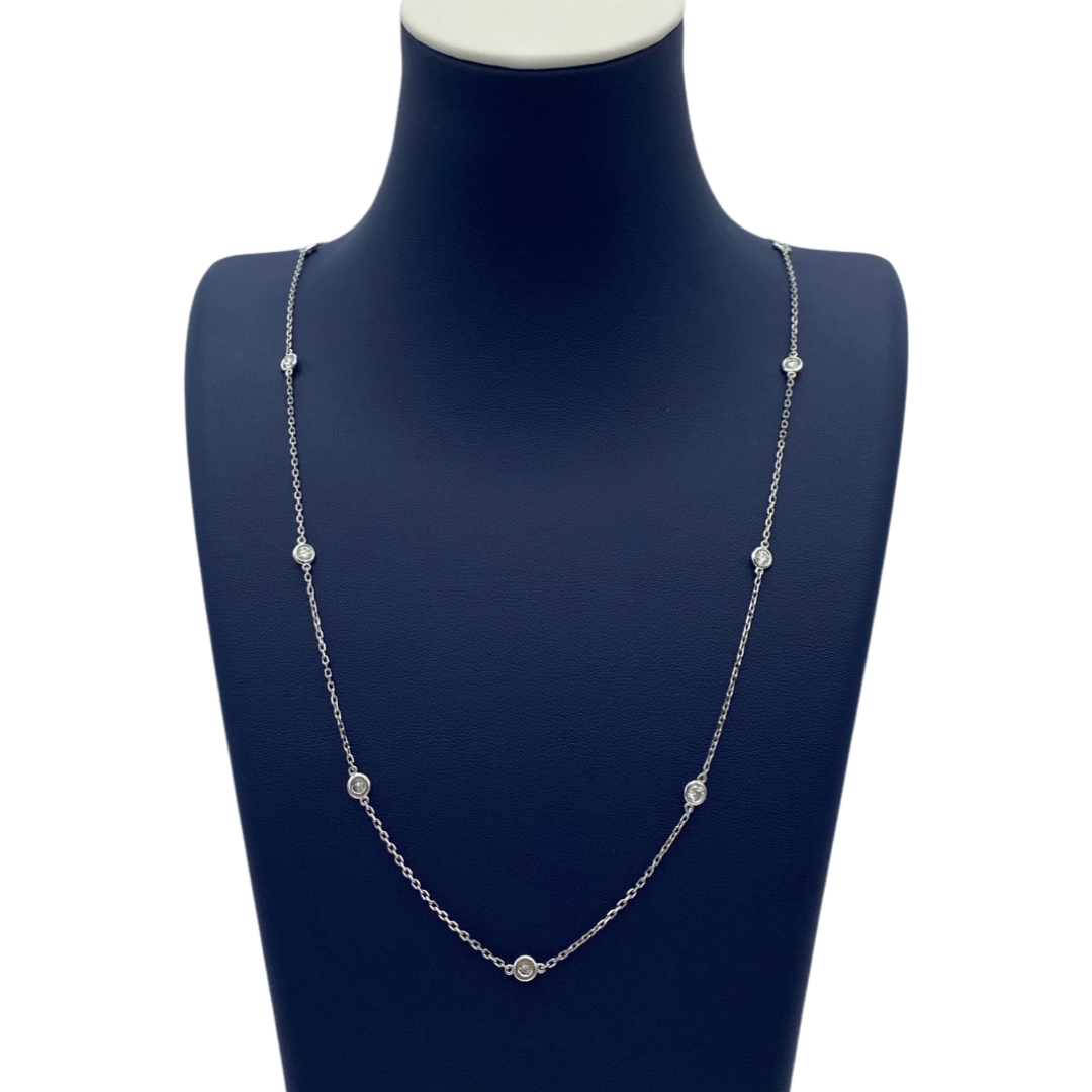 Este clásico collar de plata esterlina está adornado con brillantes piedras de circonita cúbica para una apariencia elegante y llamativa. Con una elegante cadena de 17 pulgadas y 1,6 g de plata de ley 925 para garantizar la calidad, agregue un toque lujoso a cualquier conjunto.