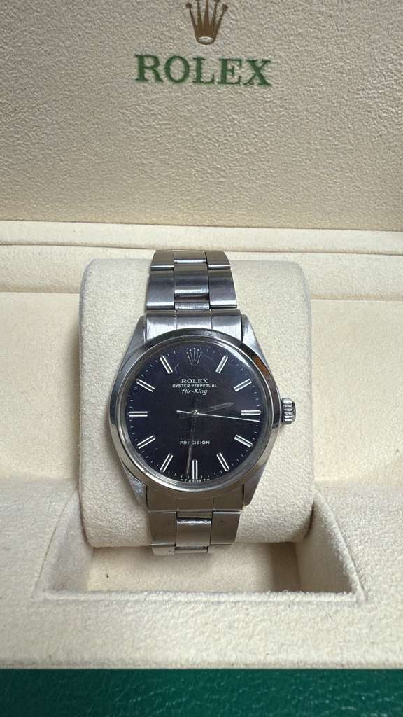The Rolex Air-King 36mm (Model 5500) from 1975 is a distinguished vintage watch celebrated for its clean design and reliable performance. With a classic 36mm case, it features a dependable automatic movement that has stood the test of time. This model is perfect for collectors seeking a timeless piece that reflects Rolex’s heritage and craftsmanship.