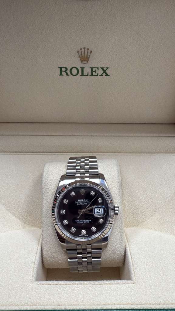 The 2009 Rolex Datejust 36mm (116234) combines classic elegance with refined engineering. Featuring a stainless steel case accented by an 18k white gold fluted bezel, this model offers a balanced 36mm size ideal for versatile wear. Powered by a precise automatic movement, it delivers reliable timekeeping showcased on a sophisticated dial. A distinguished choice for collectors and enthusiasts valuing Rolex’s timeless design and quality craftsmanship.