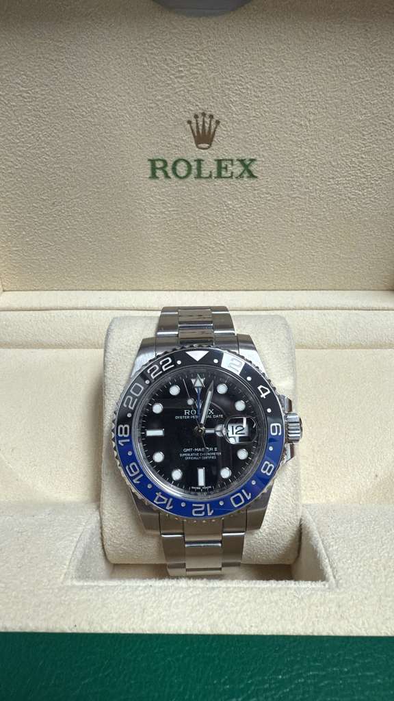 The ROLEX GMT MASTER II "Batman" is a sophisticated timepiece engineered for global travelers. Featuring a distinctive black and blue Cerachrom bezel, it offers dual time zone functionality powered by the Caliber 3285 movement, known for its precision and 70-hour power reserve. The robust Oystersteel case ensures durability, while the Jubilee bracelet delivers superior comfort. Its Cyclops lens enhances date readability, and the watch is water-resistant up to 100 meters, making it both practical and stylish for everyday wear and international journeys.
