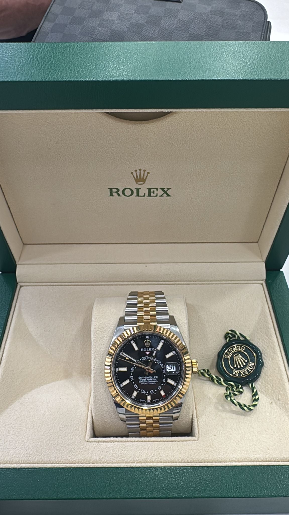 The Rolex Sky-Dweller 42mm (Model 326933) from 2022 is a sophisticated timepiece designed for global travelers. Combining stainless steel and 18k yellow gold, it features an innovative annual calendar and dual time zone display for practical functionality. Supplied with original box and papers, this watch guarantees authenticity and investment value. Perfect for professionals seeking a blend of luxury, precision, and advanced complications.