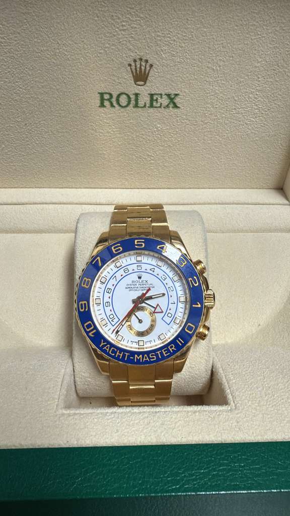 The Rolex Yacht-Master 40mm (model 116688) combines precision engineering with distinguished design, crafted from 18k yellow gold for a bold yet refined look. Its robust Oyster case guarantees water resistance up to 100 meters, making it suitable for yachting and aquatic activities. The bidirectional rotatable bezel features a black Cerachrom insert with raised numerals, enhancing both function and style. Powered by the Rolex Calibre 3135 movement, it ensures reliable performance and chronometric precision. This timepiece exemplifies luxury and durability for connoisseurs of fine watchmaking.