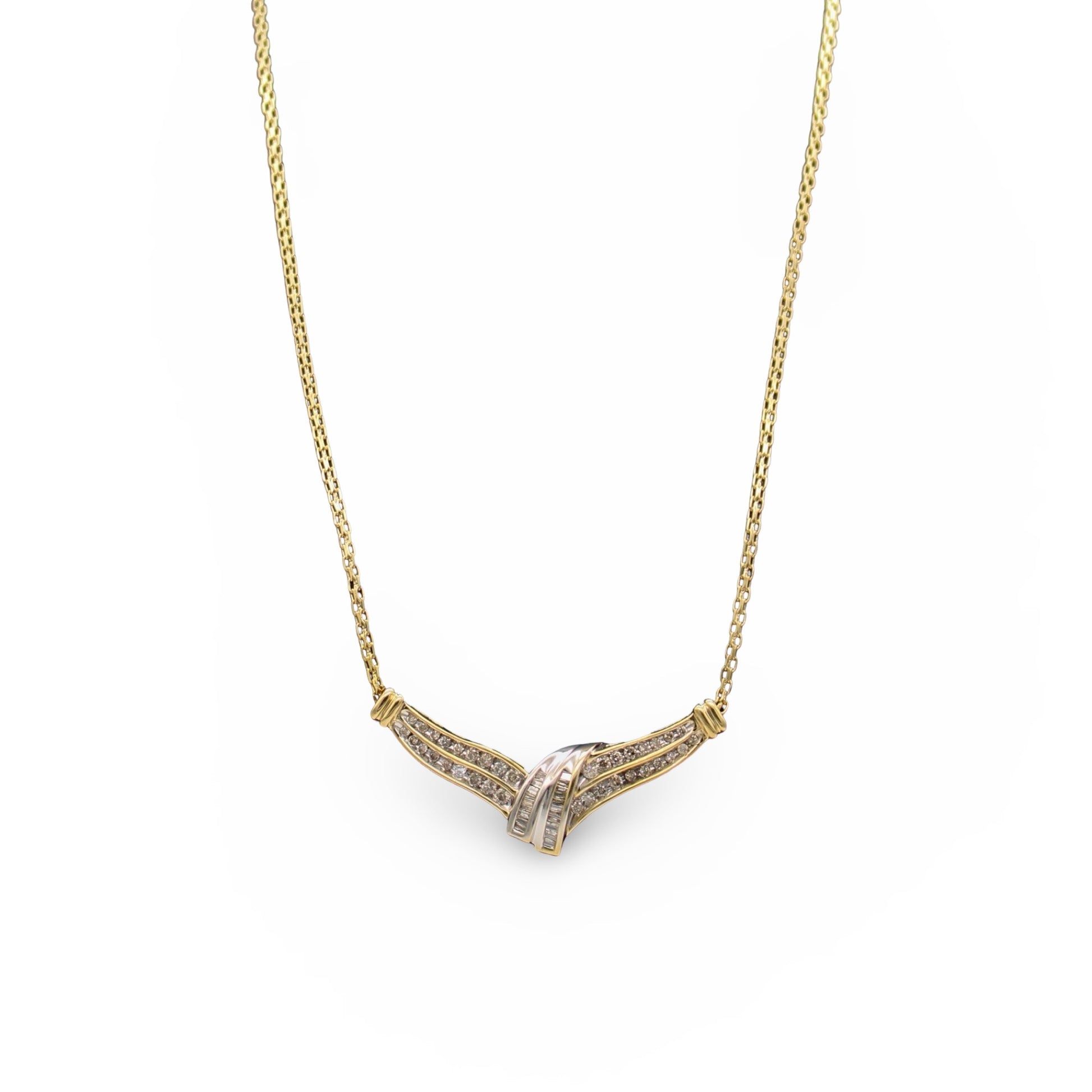 Eleve su estilo con nuestro exquisito collar de diamantes italianos de lujo, un verdadero símbolo de elegancia y sofisticación. Elaborada en oro blanco y amarillo de 14 quilates, esta deslumbrante pieza exhibe una variedad de diamantes brillantes con un total aproximado de 1,44 quilates.