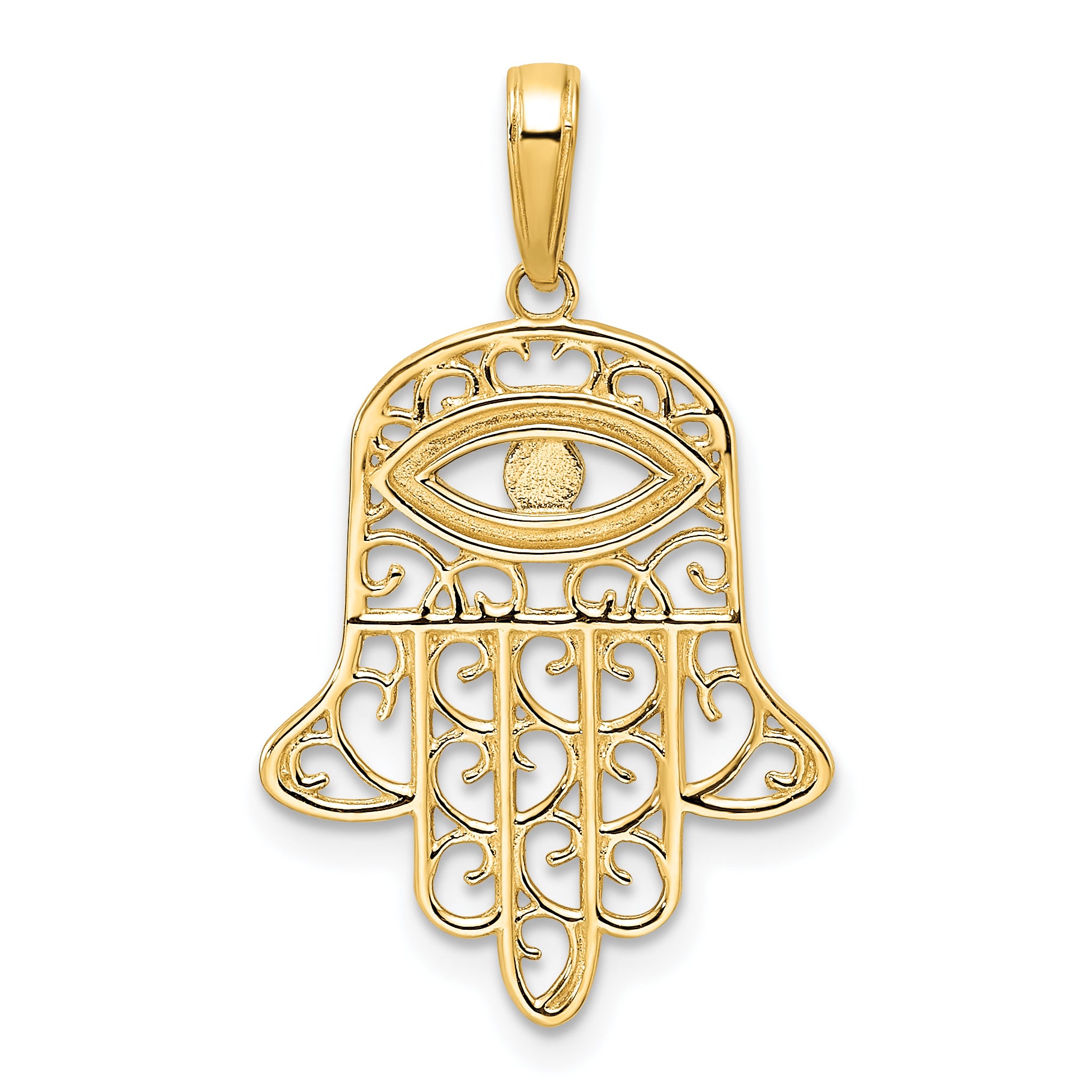 14k & White Rhodium D/C Filigree Evil Eye Hamsa Pendant