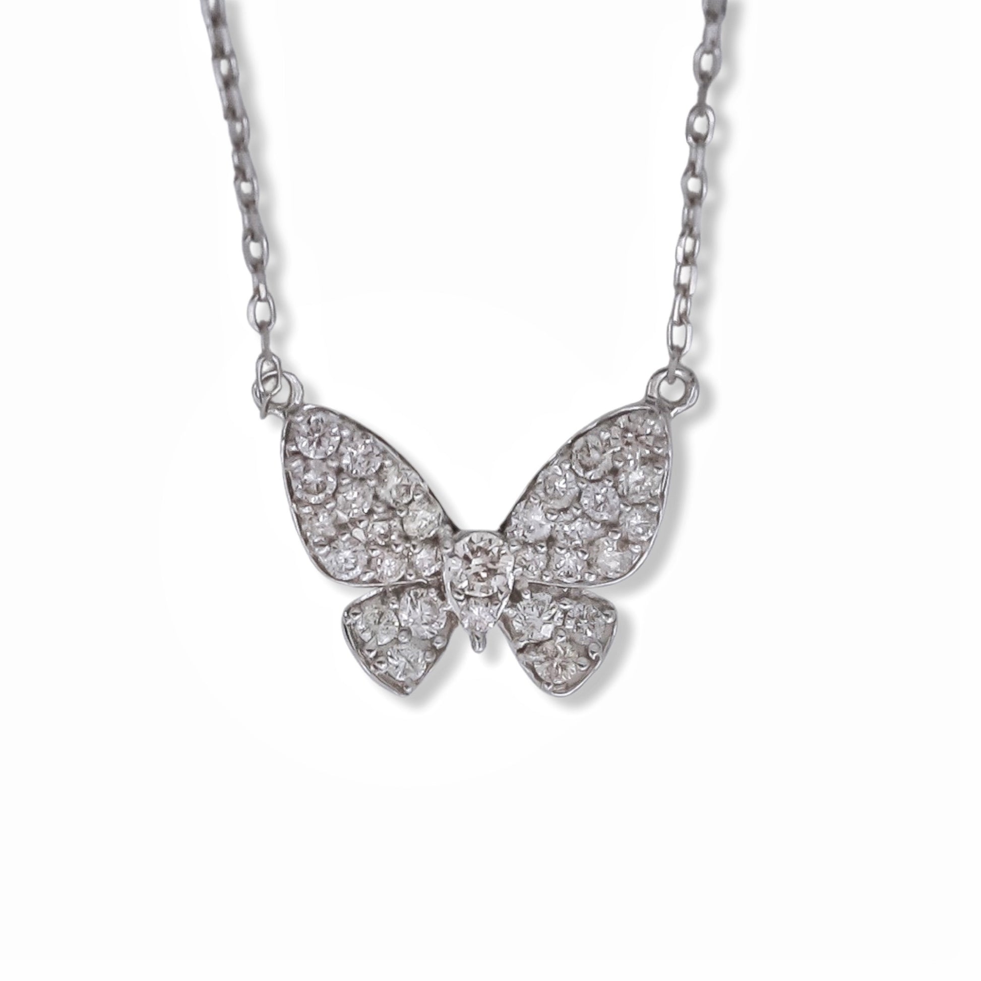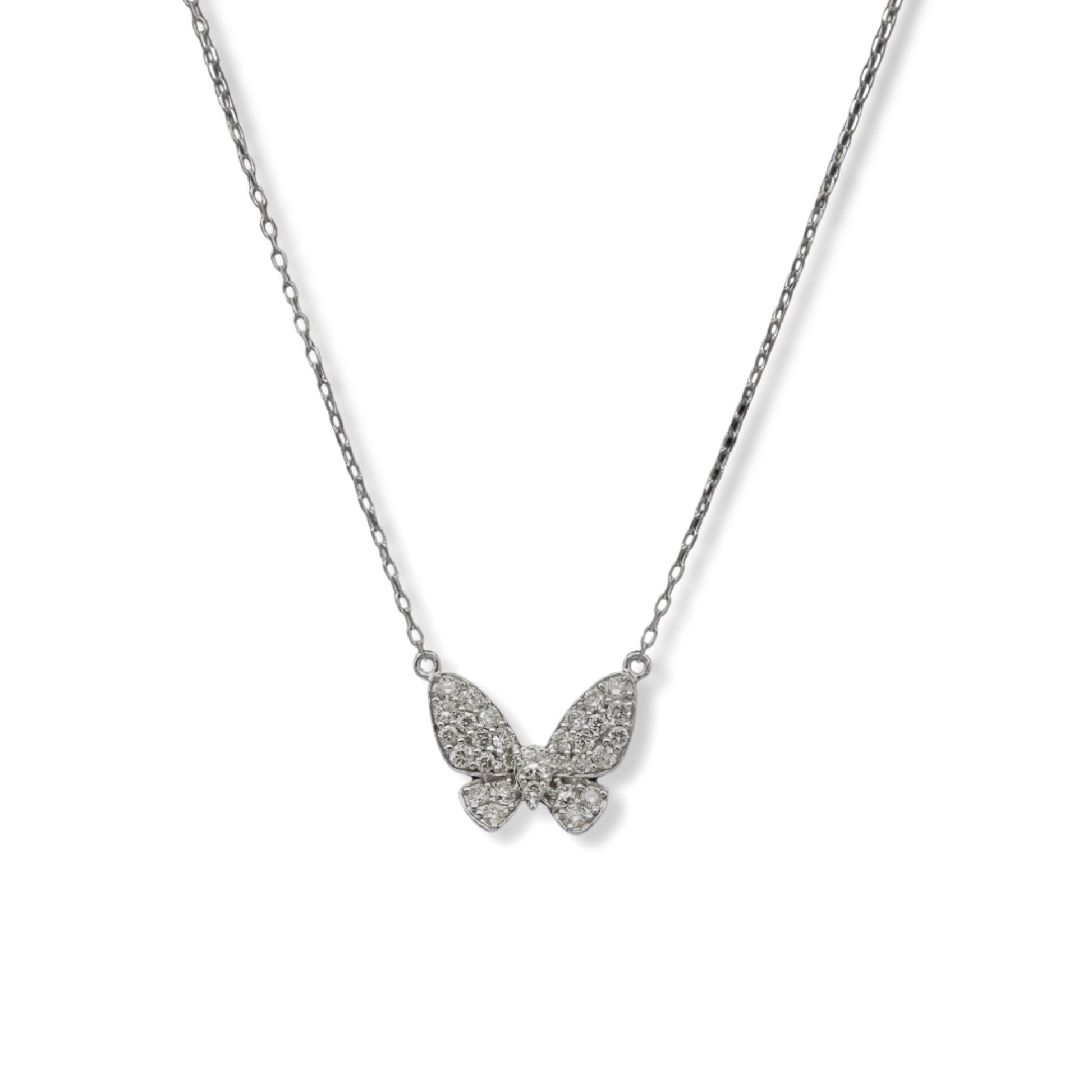 Diamond Butterfly Charm Necklace In 18K White Gold