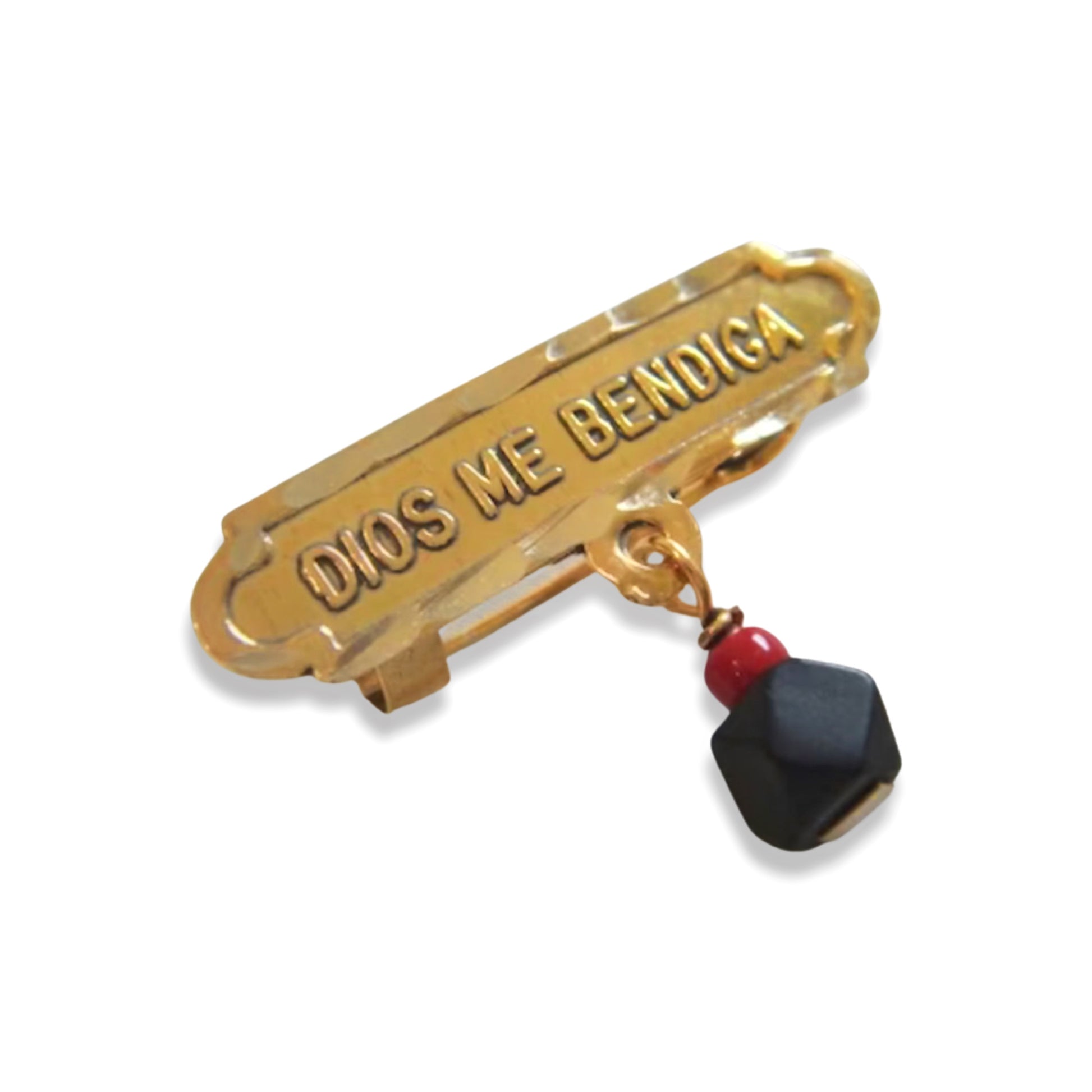 God Bless Me Baby Pin with Genuine Azabache Charm