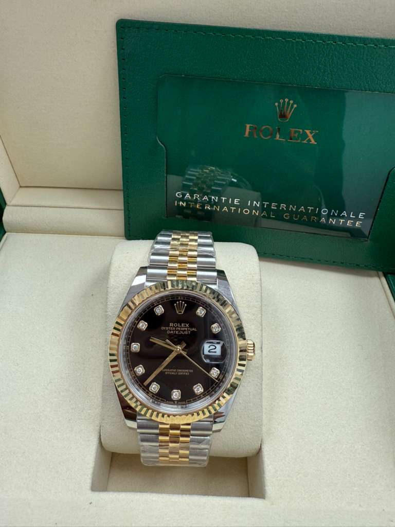 The 2025 Rolex Datejust Two-Tone Yellow-Gold 40mm (126333) combines the robustness of stainless steel with the luxury of 18k yellow gold. Featuring a 40mm case, a fluted bezel, and a classic dial, this model delivers impeccable precision through its automatic movement. Supplied with original box and papers, it exemplifies Rolex’s signature balance of timeless elegance and durable performance, perfect for sophisticated everyday wear.